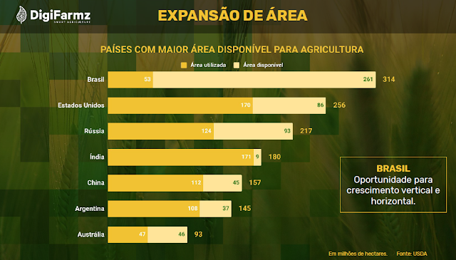 Isso é um impacto muito grande. Hoje, no mundo, existem mais de 126 milhões de hectares em área de soja, sendo que no Brasil, são quase 37 milhões de hectares, em torno de 30% da área mundial, segundo a United States Department of Agriculture (USDA). Ainda, segundo a USDA, o Brasil tem uma área disponível para cultivo da soja em torno de 261 milhões de hectares. É muita área mesmo!